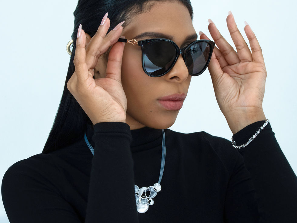 These stylish and timeless sunglasses feature a classic cat-eye frame in a sleek black color. The gold accents on the temples add a touch of elegance and sophistication. The dark grey lenses offer 100% UV protection and reduce glare, making them perfect for everyday wear or special occasions.